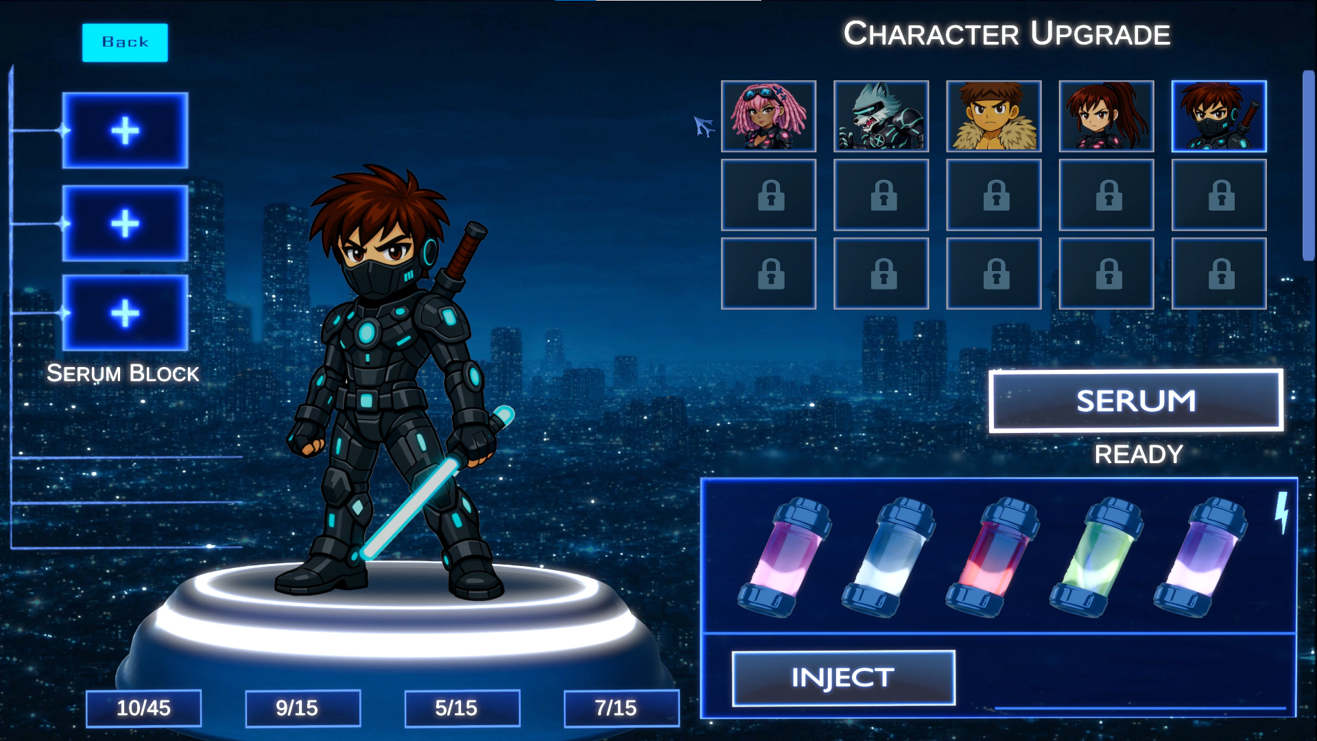 Choose from a growing roster of characters from different factions including cyber warriors, humanoids, animoids, and other evolved beings each with their own fighting style and upgrade paths.