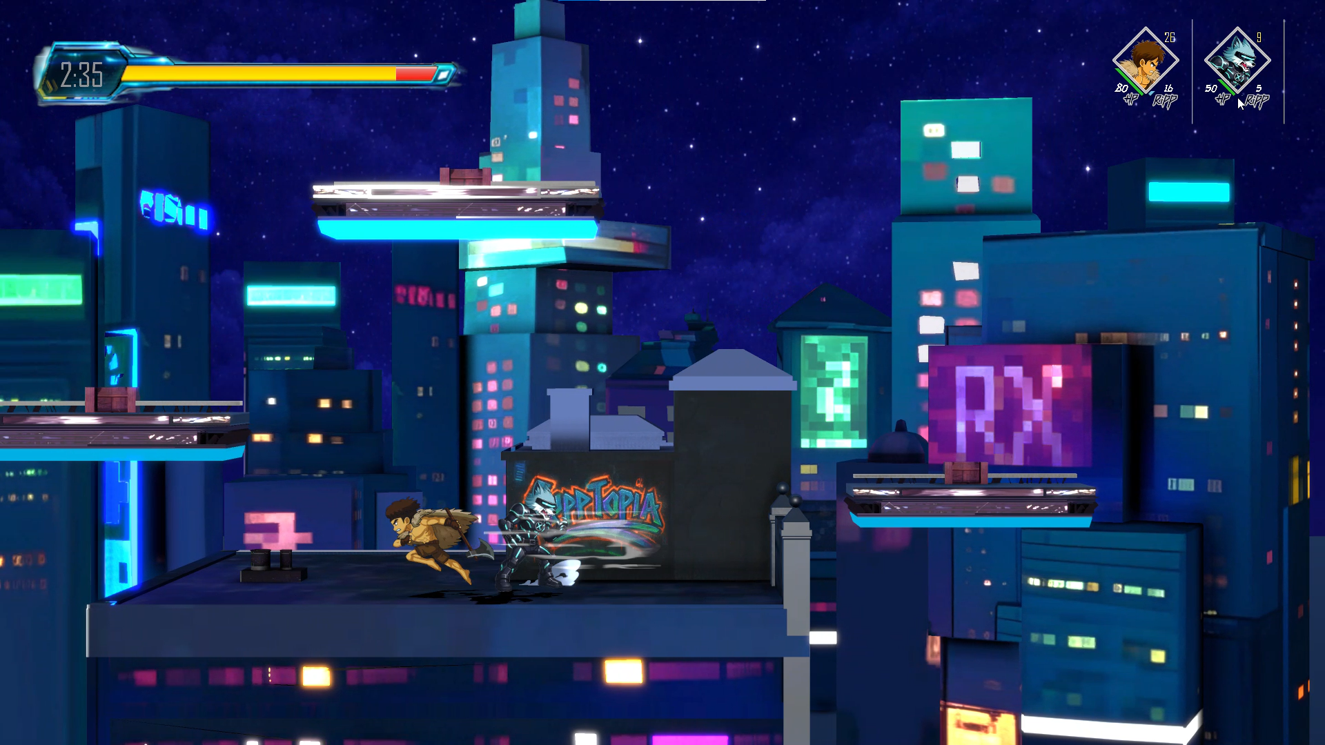 Ripptopia é um jogo de luta em plataforma repleto de ação, ambientado em um universo futurista conhecido como Ripptoverse. Os jogadores batalham em arenas dinâmicas usando combos intensos, armas poderosas e habilidades únicas.